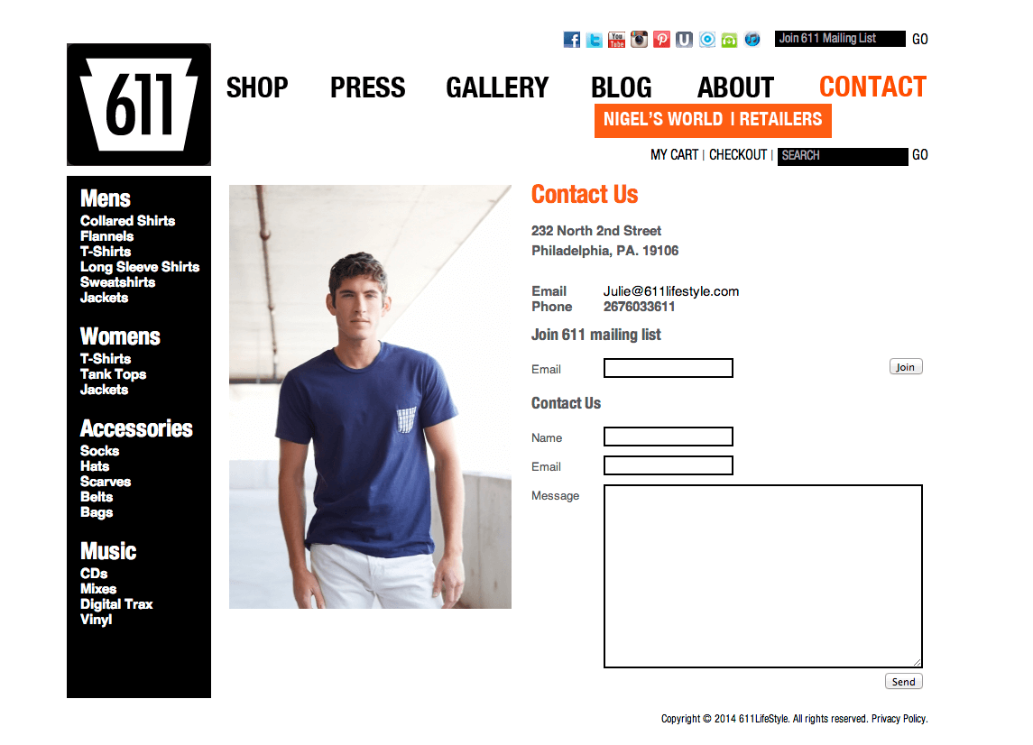 611 Records was once a record store and the center-of-the-universe for Philadelphia’s electronic music scene. Today, the brand has been reinvented as 611 Lifestyle, a web-based clothing line inspired by the dance music culture. To support its online sales, 611 Lifestyle needed to build an online store and marketing site directed at hip, young professionals. The client wanted the ability to continually update content, photos and merchandise offerings. Additionally, the website had to integrate with Shopify, the ecommerce system used for 611 Lifestyle purchasing transactions.