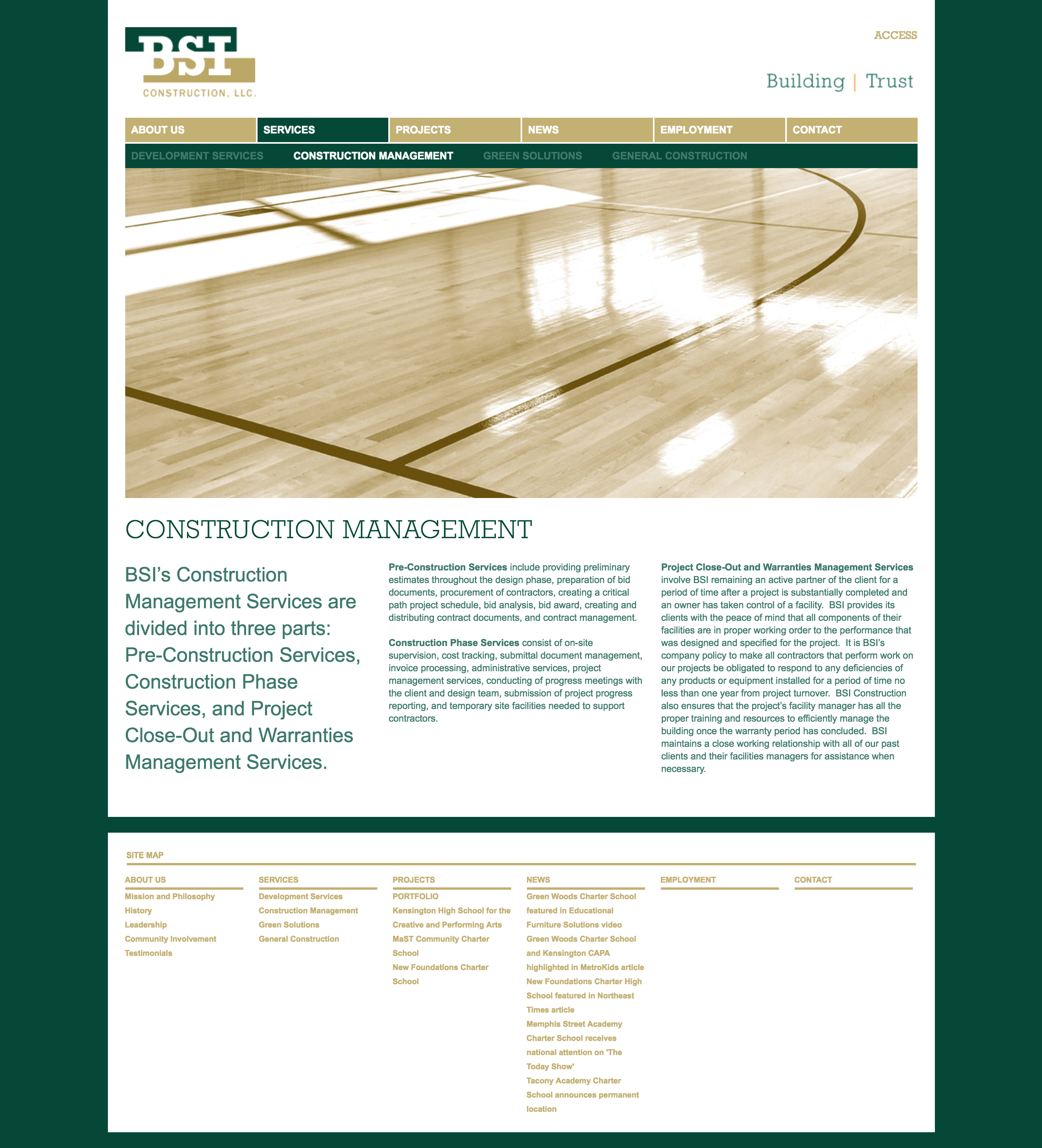 A + L Development (A + L) integrated HTML design flats provided by Modern Good into a customized A + L CMS (Content Management System). The CMS enables easy content editing, image changes, adding or removing of pages, blog posts and add case study details to their portfolio for clients to review BSI Construction’s work history.