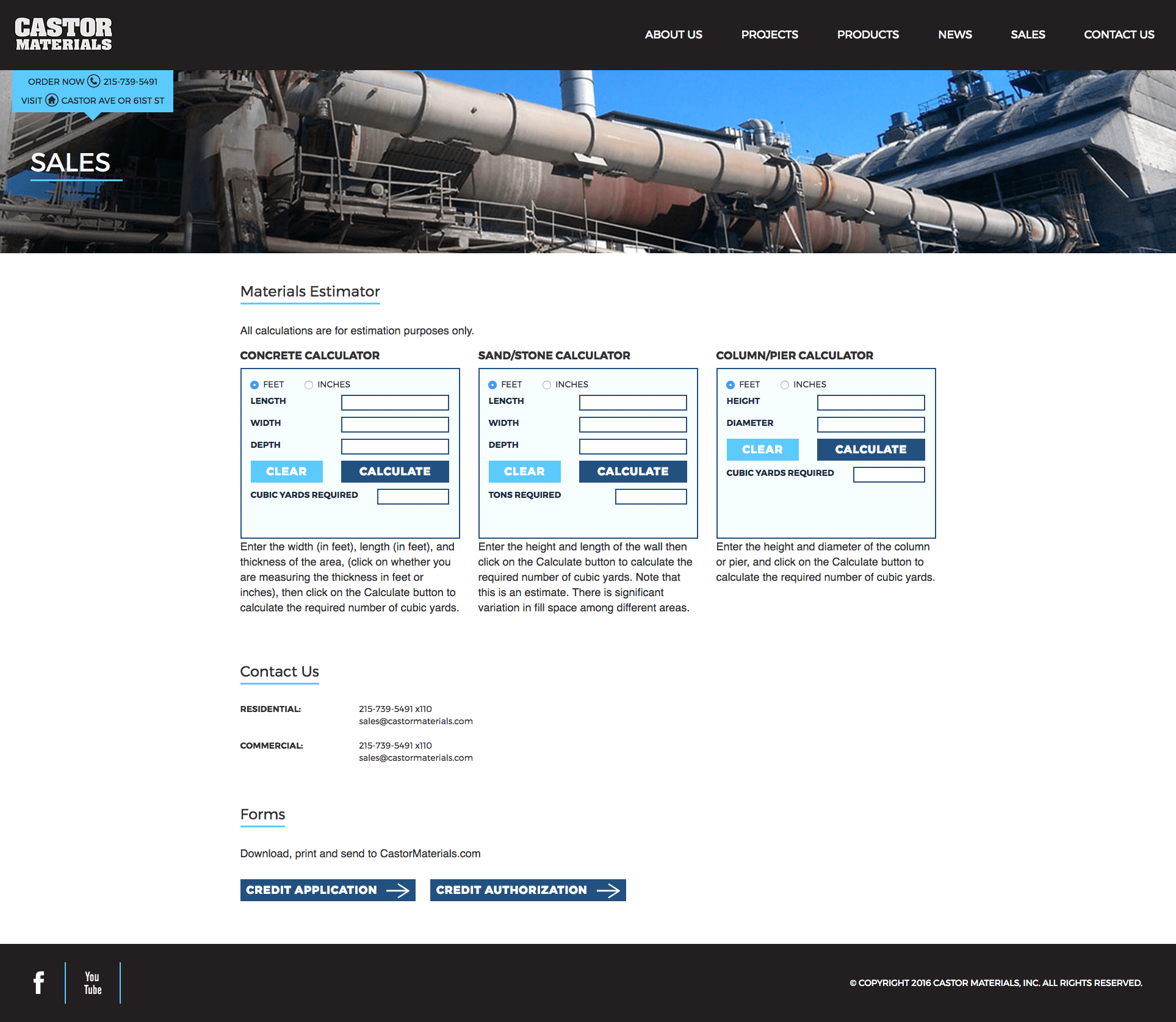 Castor Materials contacted A + L DEVELOPMENT to redesign their website to be responsive using a WordPress CMS. A + L also developed a materials estimator to calculate cubic yards/tons for concrete, sand, stone and other materials.