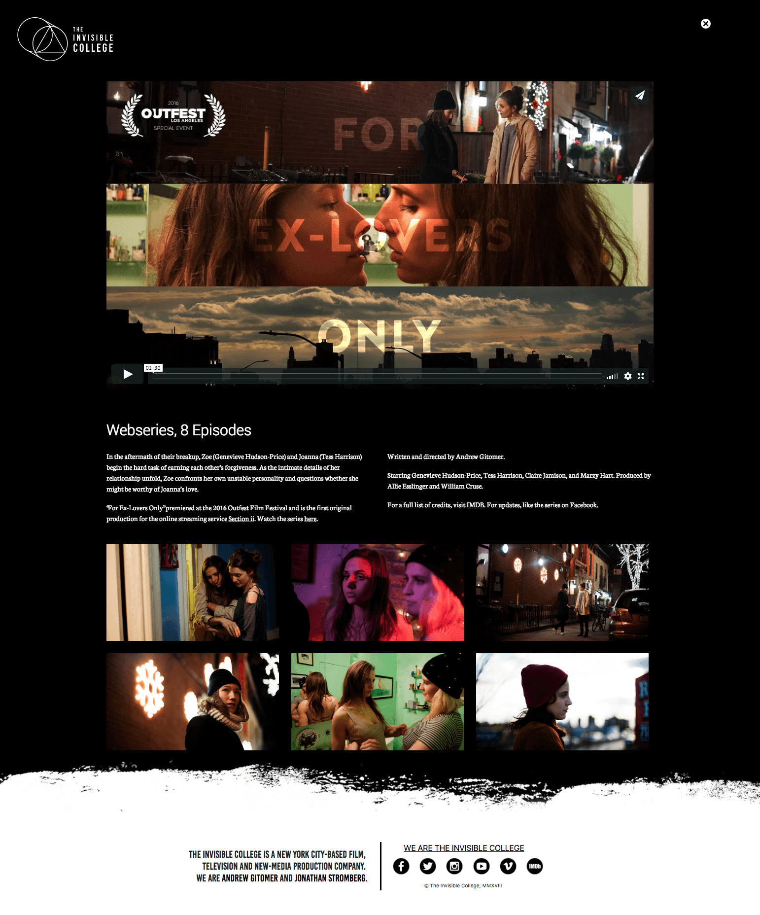 Invisible College Films was in need of a simple yet unique way to showcase their film portfolio and easily update content to embed videos, images, links and text. A + L Development designed a one-page responsive WordPress website to display their portfolio. This included a carousel image slider with customizable text and links that would open with one-click using AJAX to view and open to a portfolio page. Each AJAX activated page contains an embedded video preview, text and photo gallery which can be viewed on all devices.