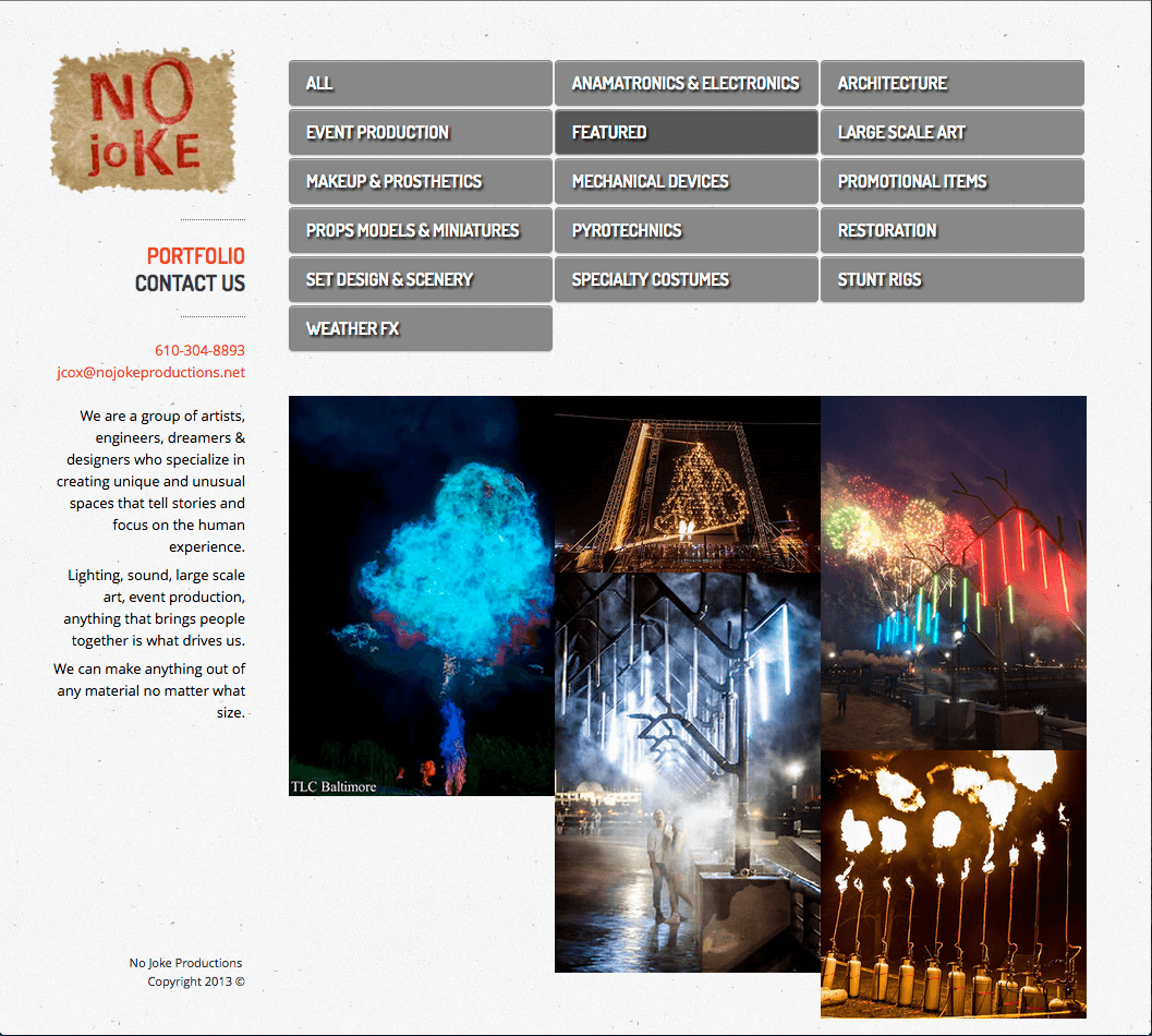 No Joke Productions needed a way to show clients their portfolio work quickly via Andriod/iPhone. They also wanted an easy way to instantaneously upload pictures to their website via Flickr, using custom tags to filter images in their portfolio. A + L coded a custom web application using Flickr’s API and designed a custom isotope gallery to display their portfolio.