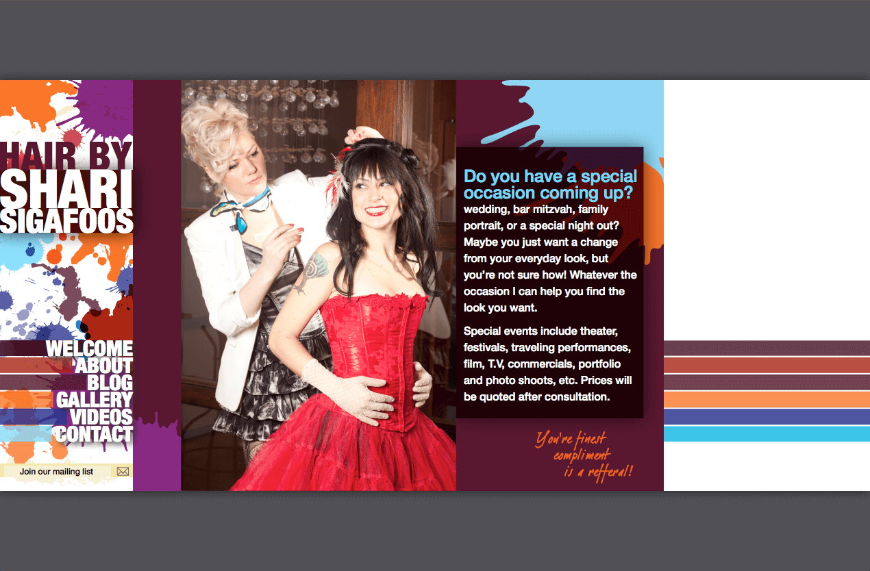 An artist, hair sculptor and stylist, Shari Sigafoos is always looking for innovative ways to create looks that fit her client’s needs for special events or an upgrade from ‘the everyday’. She wanted a website that expressed her artistic side and showcased her professionalism. In working with A + L Development, Shari helped customize her needs with a photo and video gallery, along with a contact form for potential clients to connect.
