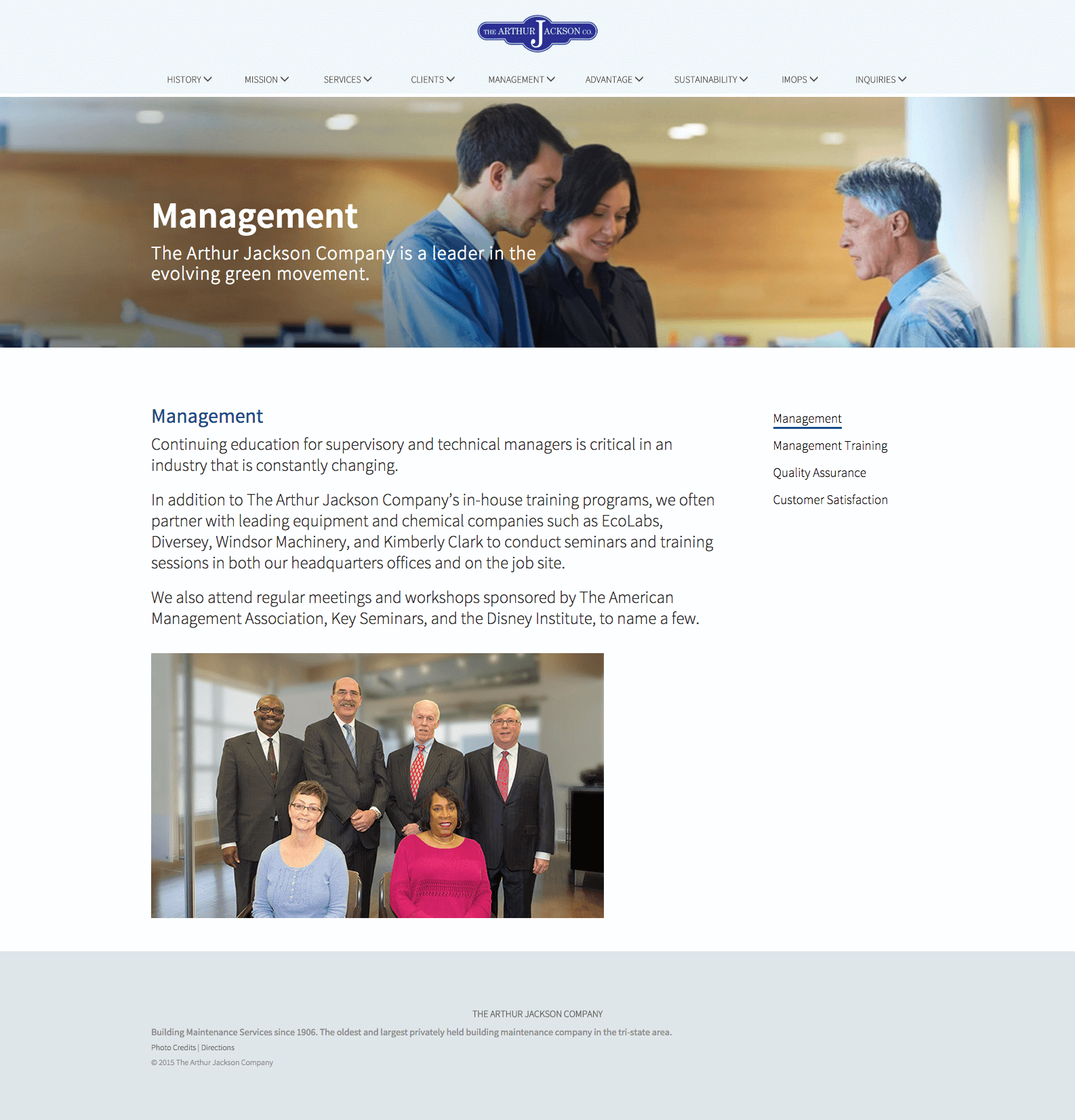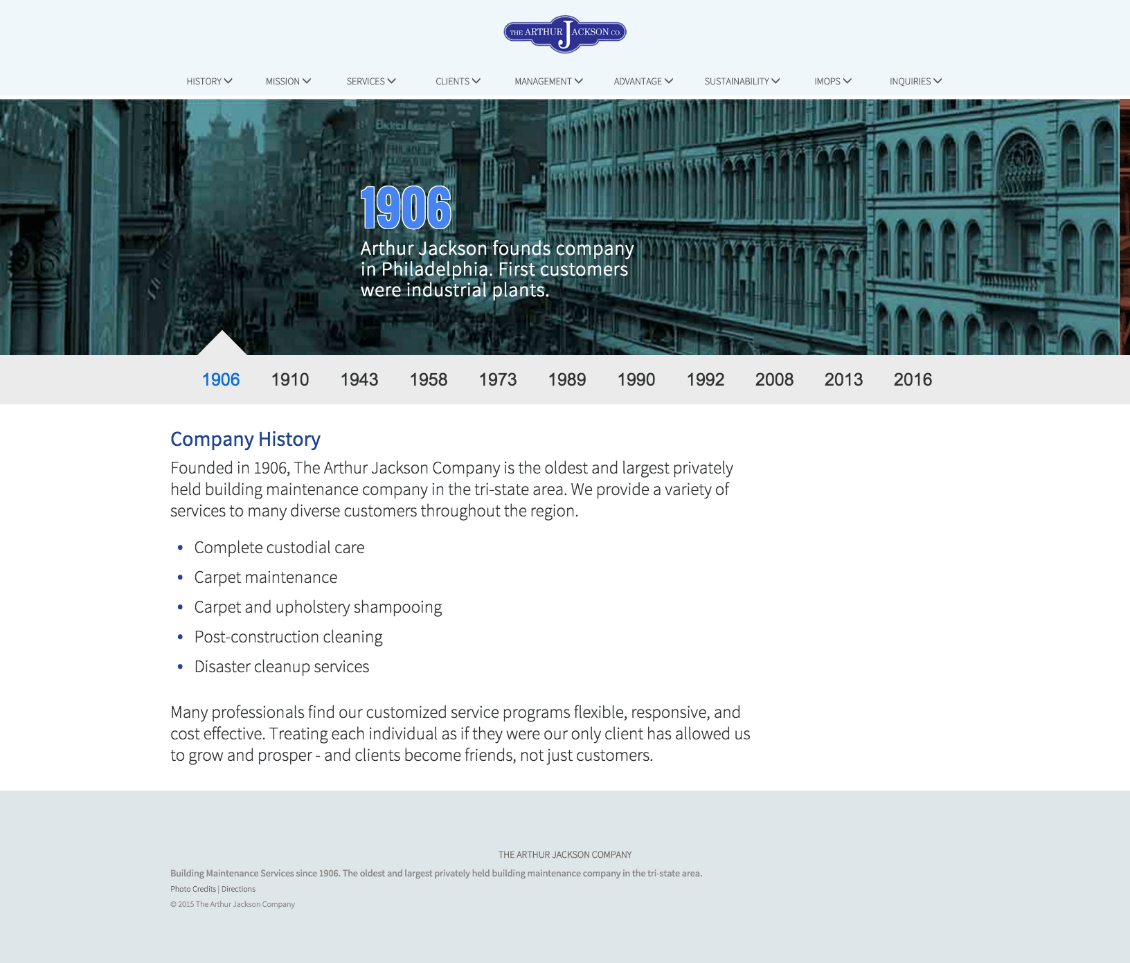 A + L DEVELOPMENT programmed the firm’s first website and most recently, have upgraded the website with new designs that display desktop, tablet and mobile views in addition to using A + L’s custom CMS. In addition, A + L programmed an interactive click-through timeline, with anecdotes about the Arthur Jackson Company’s history and growth over the years.